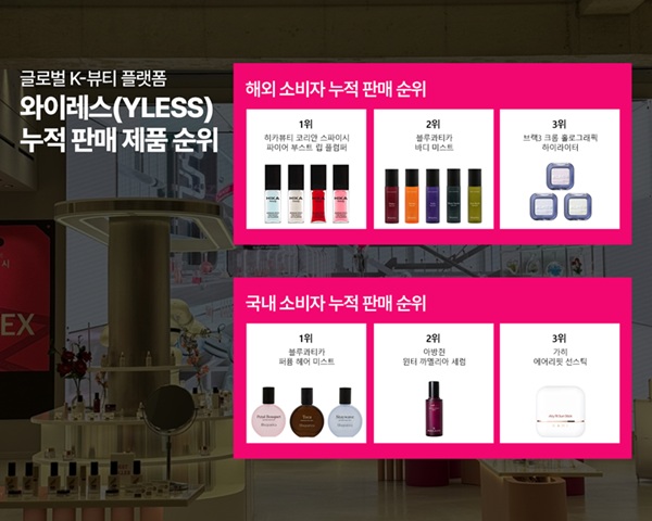 와이레스에 따르면 외국인 누적 판매 1위는 일명 ‘붉닭 립’으로 불리는 ‘히카뷰티 코리안 스파이시 파이어 부스트 립 플럼퍼’가 차지했다. 이 제품은 바르는 즉시 강한 얼얼함이 느껴지지만, 입술 주름을 일시적으로 매끄럽게 펴주고 볼륨감을 더해주는 제품으로, ‘맵지만 확실한’ 효과의 립 플럼퍼로 입소문을 타고 있다. 2위는 촉촉한 보습력과 은은한 향을 동시에 전하는 ‘블루콰티카 바디 미스트’가 차지했다. 해당 제품이 선물용으로 인기를 끌면서 5가지 향을 세트로 구매하는 해외 관광객들의 구매가 많았다는 후문이다. 뒤를 이어, 고강도 펄이 함유돼 빛과 각도에 따라 오묘하게 빛나는 ‘브랙3크롬 홀로그래픽 하이라이터’가 높은 판매량을 기록하고 있다.