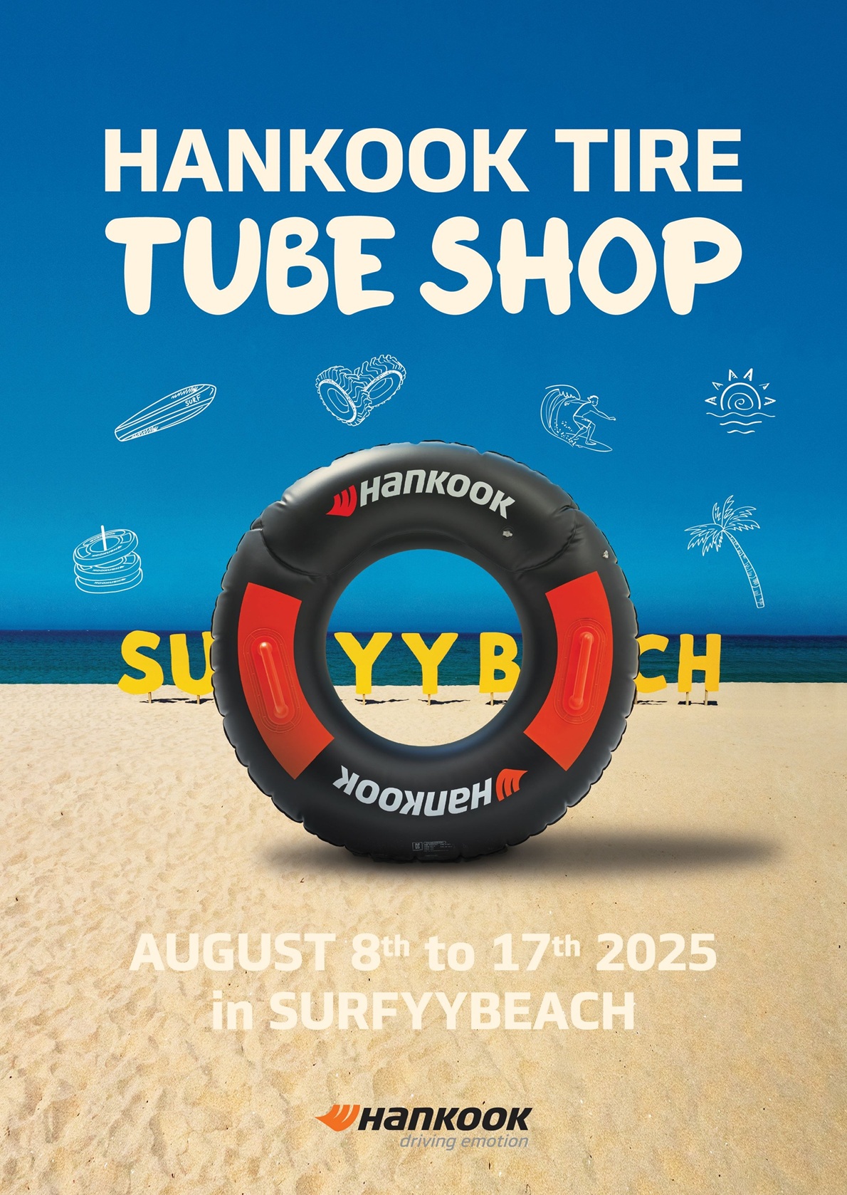 한국타이어는 지난해에 이어 국내 여름 바캉스 명소로 자리매김한 서비피치 내에 팝업스토어를 마련하고 MZ세대를 비롯한 다양한 연령대의 잠재 고객과의 소통 접점을 강화함으로써 글로벌 통합 브랜드 '한국(Hankook)'에 대한 친밀감을 형성하고자 이번 팝업을 기획했다.