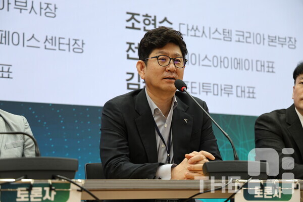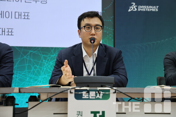 조현수 다쏘시스템코리아 본부장은 AI 기반 버추얼 트윈 기술의 중요성을 설명하며 “AI가 갖는 장점은 수많은 데이터를 분석해서 예상치 못한 돌발 변수나 새로운 체계에 맞는 다양한 케이스들을 선정해 낼 수 있는 기술이 필요하다”고 강조했다.