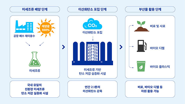 이 시설은 2023년 7월 개소한 이래 연간 약 2.1톤의 이산화탄소를 감축할 수 있는 능력을 갖췄으며, 미세조류의 광합성 작용을 통해 공장 배출 탄소를 효과적으로 흡수하고 있다. 공장 내 폐수를 재이용해 미세조류를 배양하고, 태양광 에너지를 활용하는 방식으로 운영돼 친환경 효과를 극대화하고 있다.
