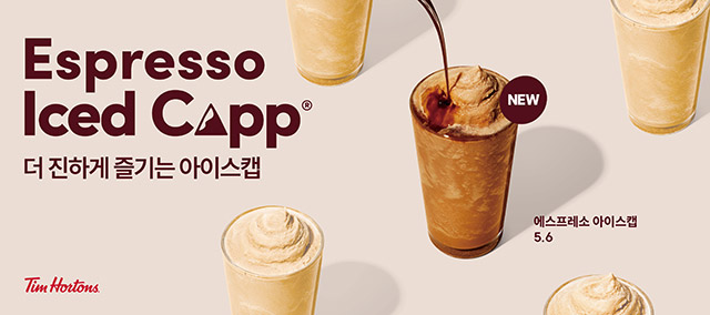 캐나다 커피 브랜드 팀홀튼이 시그니처 음료인 아이스캡에 에스프레소를 더한 ‘에스프레소 아이스캡’을 새롭게 출시했다. 기존 아이스캡보다 진한 커피 풍미를 즐길 수 있는 것이 특징이다.
