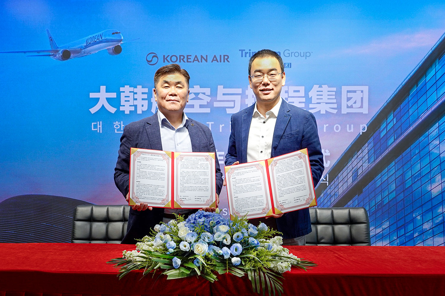 양사의 전략적 협력 MOU 협약식은 지난 6일 중국 상하이 트립닷컴 그룹 본사에서 열렸다. 협약식에는 박요한 대한항공 중국지역본부장, 장용 트립닷컴 그룹 항공권 사업부 CEO가 참석했다.