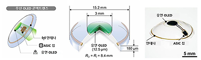 연구팀은 두께 약 12.5㎛(머리카락 굵기의 약 0.15배)의 유연 OLED를 콘택트렌즈 전극에 결합하고, 무선 전력 수신 안테나와 제어 칩을 함께 탑재해 별도의 유선 연결 없이 작동하는 광원 시스템을 제작했다. 전력은 유도 결합 방식을 통해 433MHz 대역에서 공급했으며, 구동 장치는 스마트폰과 연동 가능한 수면 안대 형태로 구현했다.
