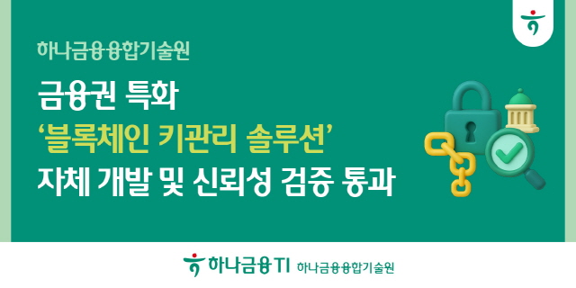하나금융티아이의 사내 독립 기업(CIC, Company In Company) 하나금융융합기술원이 금융권에 특화된 '블록체인 키관리 솔루션'을 자체 개발하고 한국정보통신기술협회(TTA)의 신뢰성 검증을 통과했다고 밝혔다.