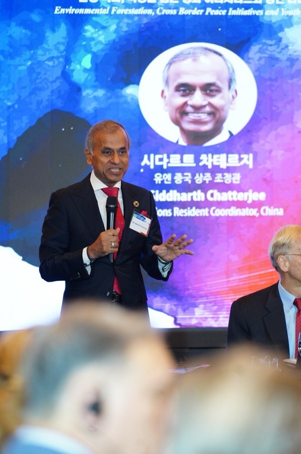 “환경 녹화, 국경을 넘는 평화 이니셔티브와 청년 리더십”을 주제로 한 세션 I에서는 시다르트 챠테르지(Siddharth Chatterjee) 유엔 중국 상주 조정관, 자글사이칸 엔크사이칸(Enkhsaikhan Jargalsaikhan) 블루배너 의장(전 몽골 유엔 대사), 배철용 유한킴벌리 CSR 팀장 등이 참석해 한국·몽골·중국·일본 등에서 진행 중인 산림화 협력과 청년 리더십 사례를 바탕으로, 시민사회·민간이 주도하는 환경 서비스 모델을 COP17(사막화방지협약) 연계 성과로 확장하는 방안을 다뤘다. 이 자리에서 시다르트 차테르지 유엔 중국 상주 조정관은 “25년간 국제 협력 및 인도적 지원 경험을 토대로 보면 환경 이슈는 정치적 갈등을 넘어 협력의 장을 만들 수 있다”며 “환경을 평화의 공통 언어로 만드는 노력이 중요하다”고 말했다.