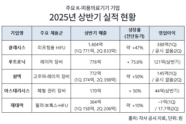 국내 주요 미용의료기기 기업들이 2025년 상반기 일제히 최대 실적을 기록했다.