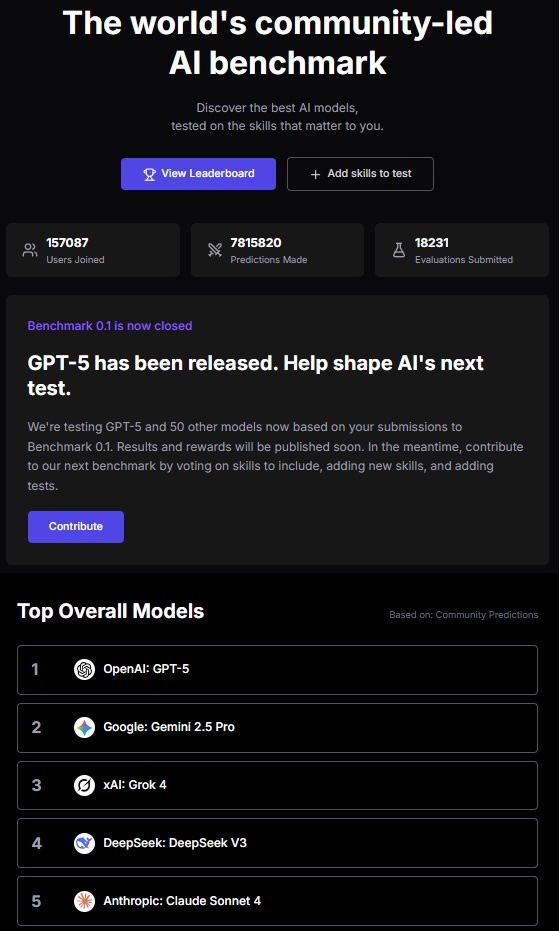 이번 벤치마크에는 전 세계 약 15만 명의 사용자가 참여해 단 5일 동안 약 781만 건의 예측과 1만 7천여 건의 평가 데이터가 집계됐다. 리콜에 따르면, 벤치마크 대상은 GPT-5를 포함한 50개 이상의 대형 AI 모델로, 단일 AI 벤치마크 중 최대 규모다.