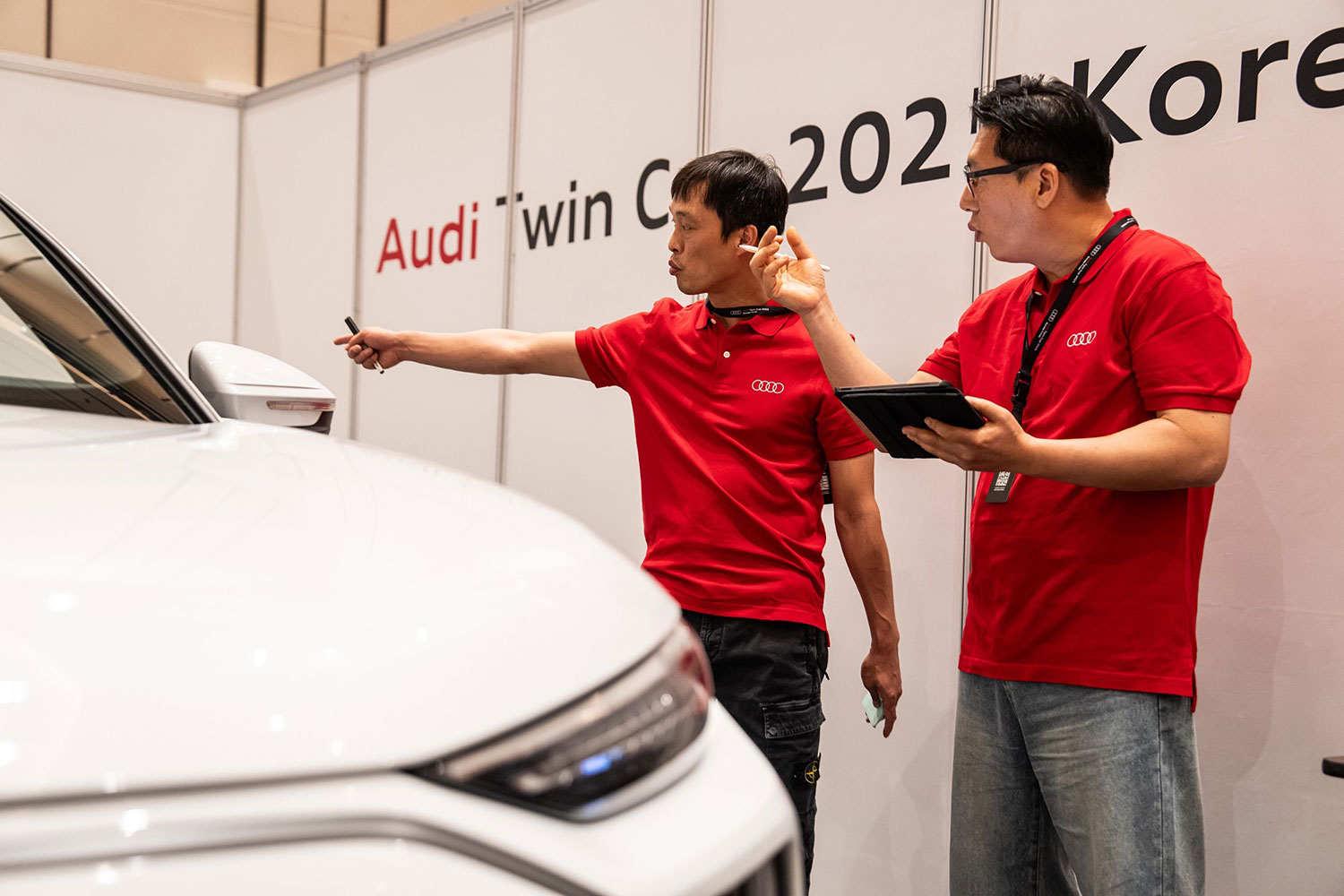 이번 아우디 트윈컵 2025 한국 결선에는 총 30개 팀(신차 세일즈 부문 12팀, 중고차 세일즈 부문 3팀, A/S 서비스 부문 6팀, A/S 테크놀로지 부문 9팀) 55명이 참가했다. 평가는 아우디 신차 및 중고차 전시장과 공식 서비스센터에서 흔히 발생할 수 있는 상황을 토대로, 이론과 실제 상황을 고려한 고객 응대 및 정비 기술, 그리고 실제 차량으로 실시하는 팀별 실기 테스트 및 개인별 필기 테스트가 실시됐다.