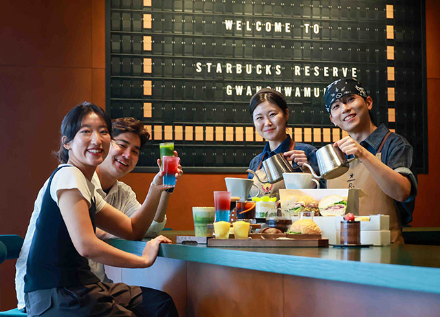 리저브광화문은 단일 원산지 리저브 원두와 바리스타 전문 큐레이션을 통해 원하는 음료, 원두, 추출방식을 선택할 수 있는 체험형 매장이다. 스모크드 콜드 패션드, 프렌치 바닐라 말차 라떼 등 시각적 즐거움과 독창적 맛을 강조한 음료를 제공하며, 에스프레소 마티니, 라떼 위스키 마티니 등 커피 기반 칵테일도 준비됐다.