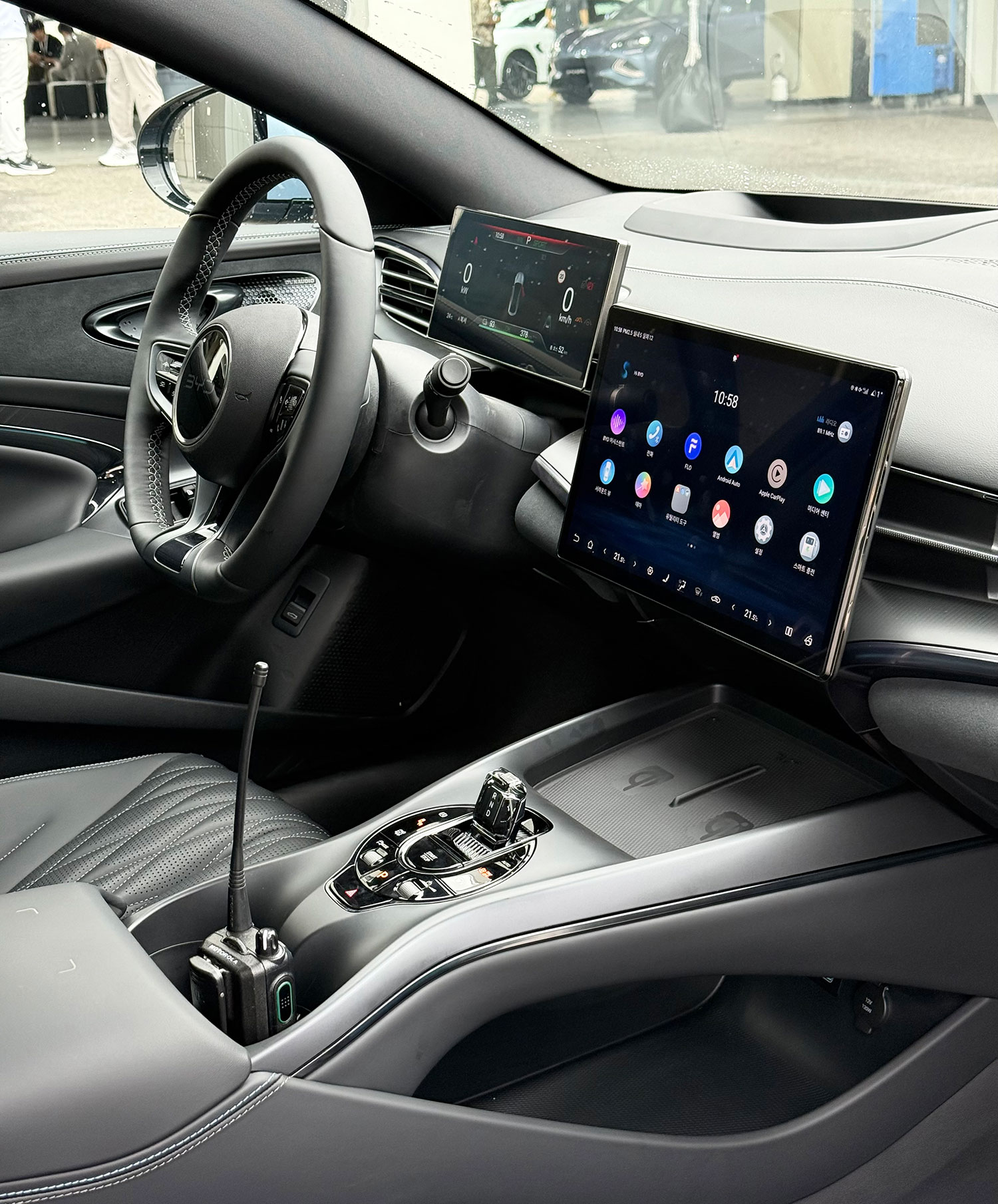 중앙부에 위치한 12.8인치 회전식 디스플레이와 10.25인치 디지털 계기판은 미래지향적 느낌을 더한다. 특히 회전식 디스플레이는 내비게이션은 세로, 영상 감상은 가로 등 사용자 편의에 따라 방향을 바꿀 수 있어 신선한 경험을 제공한다. 음성 명령은 물론 차량 대부분 기능을 손쉽게 조작할 수 있어 편리하다.