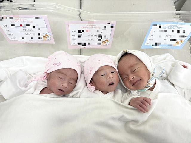 지난 7월 9일, 산모 김은지(34) 씨는 임신 34주 차에 제왕절개를 통해 첫째 여아(1.67kg), 둘째 여아(1.47kg), 셋째 남아(1.92kg)를 출산했다. 삼태아 임신은 임신 주차가 지날수록 자궁이 빠르게 한계에 도달하면서 조산 위험이 크다. 여기에 조기 진통, 임신중독증, 양수과다증 등 합병증 가능성도 높아져 적절한 분만 시기를 결정하는 것이 무엇보다 중요하다.