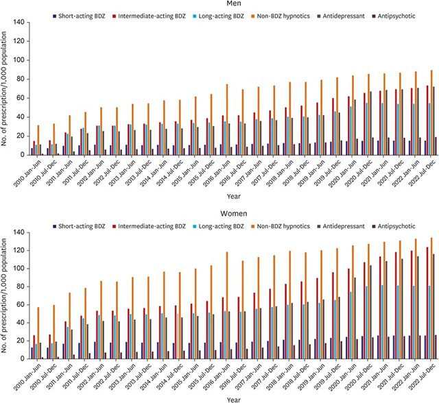 서울대병원 이유진·서울의대 신애선 교수팀의 연구는 2010~2022년 불면증 환자 814만 명의 건강보험 데이터를 분석했다. 분석 결과, 전체 수면제 처방 건수는 2010년 1,050만 건에서 2022년 4,240만 건으로 4배 이상 늘었고, 팬데믹 기간 모든 연령대에서 처방량이 예측치를 초과했다. 특히 18~29세 청년층의 증가 폭이 두드러졌다. 해당 연구는 2025년 8월 대한의학회 국제학술지 JKMS에 발표됐다.