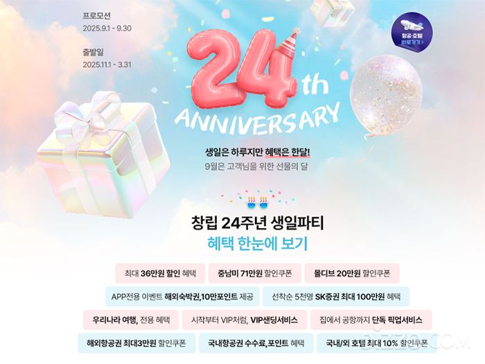 노랑풍선은 창립 24주년을 기념해 11월 1일부터 2026년 3월 31일까지 출발하는 해외패키지 상품 예약 고객을 대상으로 다양한 혜택을 제공하는 고객 감사 프로모션을 진행한다.