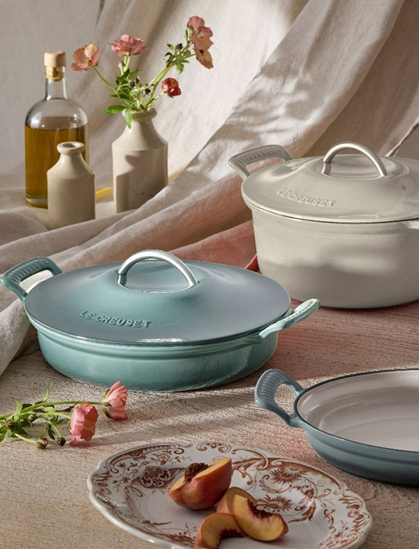 이번 컬렉션은 르크루제의 클래식한 디자인을 현대적으로 재해석한 리미티드 에디션으로, 국내에서 처음 출시된다. 제품은 스테인리스 스틸 루프형 손잡이와 오픈 스칼럽 형태의 사이드 핸들을 적용해 사용 편의성을 높였다. 또한 법랑 코팅 주물로 제작돼 내구성을 강화했으며, 내부는 밝은 에나멜 코팅으로 조리 과정을 확인할 수 있다.