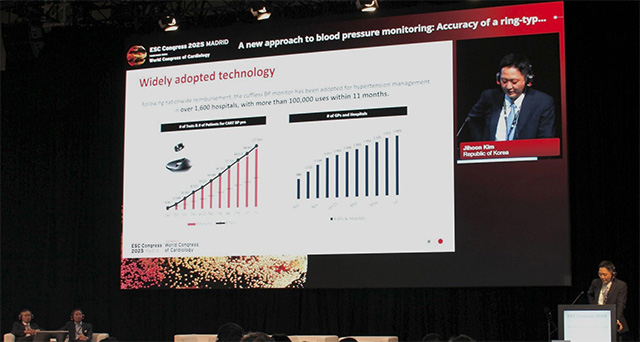 스페인 마드리드에서 열린 유럽심장학회(ESC 2025)에서 커프리스 반지형 혈압계 ‘카트 비피 프로(CART BP pro)’의 임상 연구 결과가 발표돼 학계의 주목을 받았다.