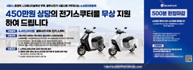 서울시는 1일 환경부, LG에너지솔루션, 블루샤크, KR모터스와 협력해 소상공인 전기 스쿠터 보급 행사를 진행한다고 밝혔다.