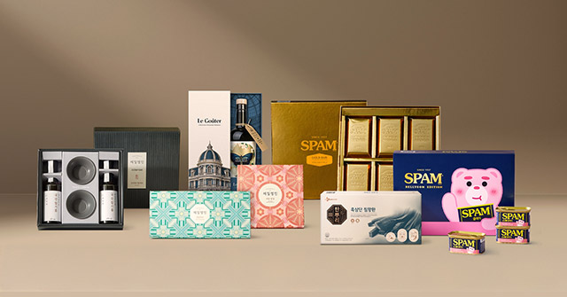 대표 상품인 스팸 선물세트는 네이버 해피빈, 라이프스타일 브랜드 벨리곰 등과 협업해 한정판으로 출시됐다. 해피빈 세트는 판매 수익금 일부가 돌봄 결손 아동 지원에 사용되며, 스팸 골드바 에디션, 스팸 슈퍼문 에디션 등 희소성을 강조한 패키지도 준비했다.