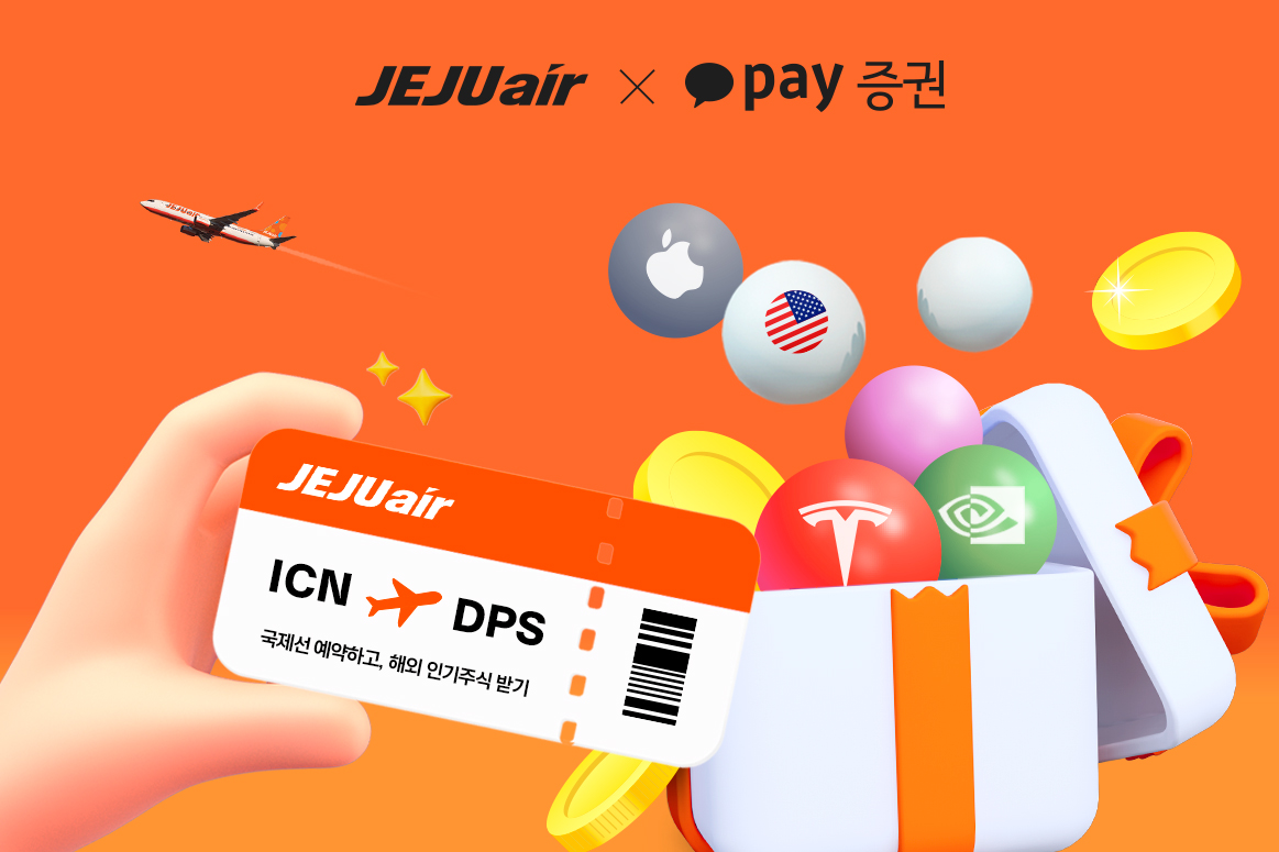 제주항공이 카카오페이증권과 함께 내달 31일까지 국제선 왕복항공권 구매자 전원에게 엔비디아, 에어비앤비 등 인기 해외 주식을 랜덤으로 증정하는 이벤트를 진행한다고 16일 밝혔다.