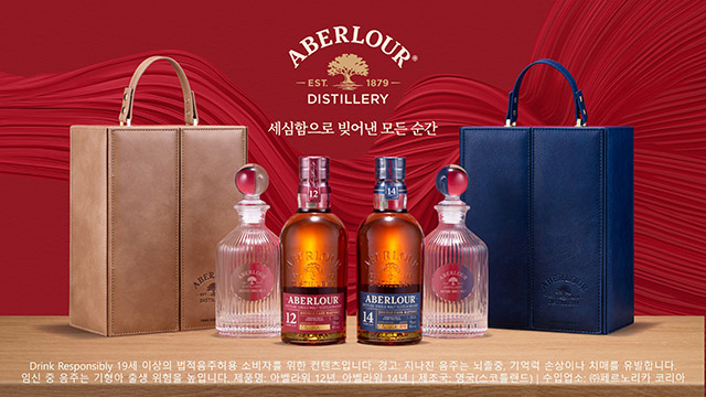 크래프트 싱글몰트 위스키 아벨라워는 증류소 인근에서 재배된 원료를 바탕으로 아메리칸 오크와 셰리 오크 캐스크에서 더블 캐스크 숙성을 거쳐 완성된다. 이번 세트는 아벨라워 12년과 아벨라워 14년으로 구성됐으며, 각각 잘 익은 붉은 사과 향, 바닐라와 꿀·체리 풍미가 특징이다. 프리미엄 디캔터와 가죽 캐리어 백을 함께 제공해 선물가치를 높였다.