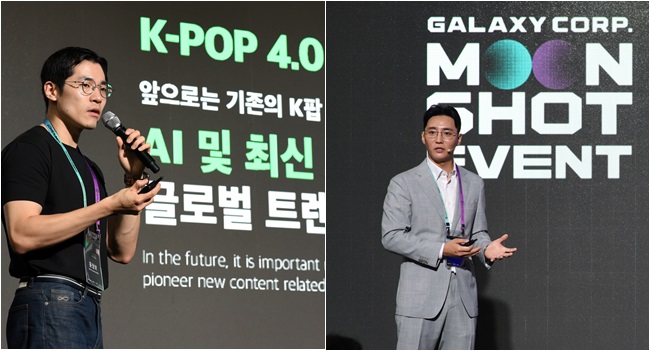 이종무 GMO는 행사 명칭인 ‘문샷 이벤트’가 갤럭시코퍼레이션 내부의 혁신 미래 과제를 추진하는 ‘문샷 협력체’에서 유래했음을 소개하며, “문샷 협력체는 집단지성을 바탕으로 다양한 AI 엔터테크 아이디어를 도출해 실제 실행으로 연계한 성공 사례들을 만들어왔다”고 설명했다. 또한 그는 지난 9월 LA에서 연령, 성별, 국적 등의 편견 없이 진행한 글로벌 버추얼 아티스트 오디션 솔루션을 활용해, 본캐가 아닌 부캐로 무대에 등장하는 연출을 시연하는 등 다양한 AI 엔터테크 사례를 현장 데모와 함께 공개했다.