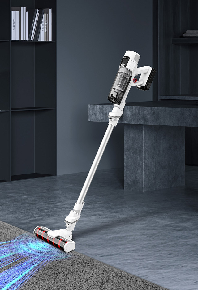 배터리 완충 시 최대 45분 사용할 수 있으며, 바닥 감지 센서가 먼지양에 따라 흡입력을 자동 조절한다. 스마트 컨트롤 디스플레이를 통해 에코, 오토, 부스트 등 세 가지 청소 모드를 쉽게 전환할 수 있고, 배터리 잔량과 필터 청소 알림도 확인할 수 있다.