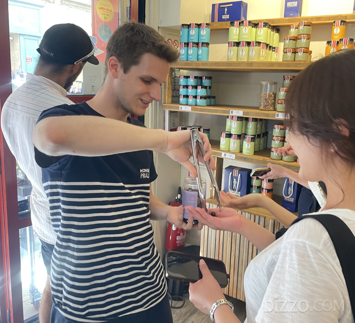 깔리송을 파는 상점 앞에는 직원이 여러 종류의 깔리송을 시식하게 해준다. 클래식한 맛부터 멜론, 라벤더 향이 가미된 현대적인 맛까지 다양한 맛의 깔리송을 맛볼 수 있으니 꼭 시식을 해보고 구입하는 게 좋겠다.