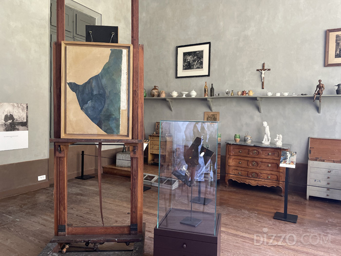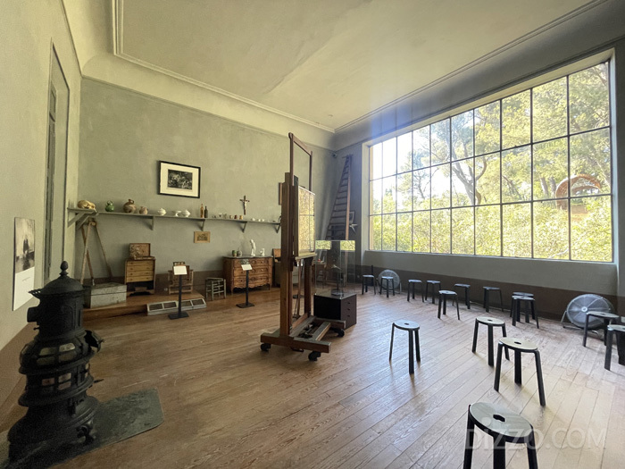 가이드는 바닥의 특정 지점을 가리켰다. "세잔은 여기 서서 이젤을 놓고 작업했을 것입니다. 이 각도에서 창문을 통해 들어오는 빛이 가장 이상적이었거든요." 스튜디오에는 세잔이 사용했을 법한 팔레트, 붓 등이 복원되어 놓여있었다.