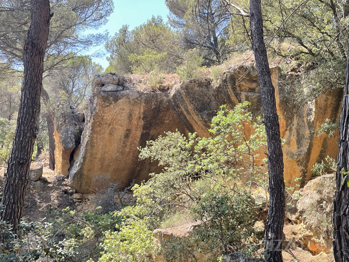 다음 날에는 '세잔의 발자취를 따라서' 도보 가이드 투어에 참여했다. 목적지는 비베뮈스 채석장이었다. 이 7헥타르의 바위 고원은 18세기까지 엑상프로방스 기념물들을 위한 채석장으로 운영되었다. 세잔은 이 채석장을 방치된 상태로 발견했다. 식물이 되살아났지만, 황토색 바위는 인간 작업의 흔적을 그대로 간직하고 있었다. 여기서 입체파가 탄생했다.세잔은 어린 시절 친구들과 함께 비베뮈스 채석장을 처음 탐험했지만, 본격적으로 그림을 그리기 시작한 것은 50대가 되어서였다. 그는 1890년부터 1904년 사이에 이곳에서 11점의 유화와 16점의 수채화를 그렸는데, 그중 가장 유명한 작품이 <붉은 바위>다. 캔자스시티의 넬슨-앳킨스 미술관과 볼티모어 미술관이 소장한 <비베뮈스 채석장에서 본 생트빅투아르 산>도 이 채석장에서 탄생했다.