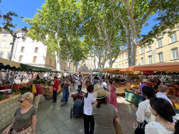 미라보 광장의 프로방스 시장은 색과 향으로 가득했다. 신선한 과일과 채소는 물론이고 프랑스 치즈, 육류, 허브와 향신료, 라벤더 제품 등을 둘러보고 구매할 수 있다.