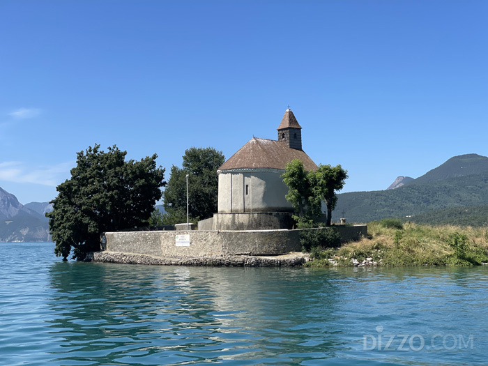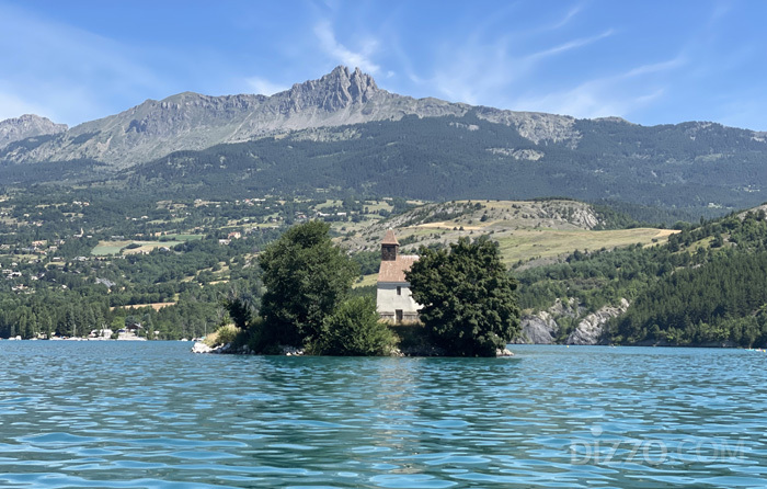 보트는 세르 퐁송 호수의 가장 유명한 랜드마크로 향했다. 바로 생 미셸 예배당(Chapelle Saint-Michel)이다. 댐이 만들어질 때 물에 잠기지 않고 남은 이 예배당은, 지금은 호수 위를 지나는 여행자들에게 가장 인상적인 풍경을 선물한다.