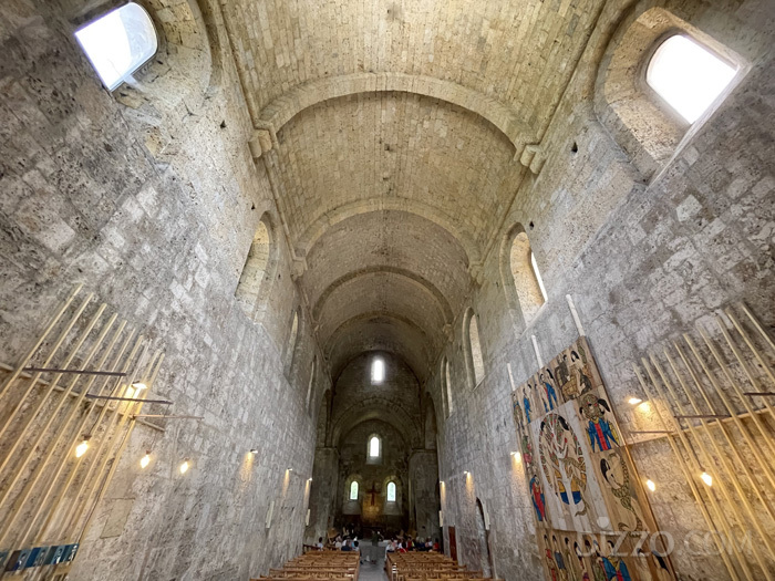 화려한 장식 없이도 수도원 내부는 석재의 질감이 빛과 어우러지며 독특한 평온함을 만든다. 교회 내에는 일반적으로 보이는 십자가가 설치되어 있지 않으며, 빛과 그림자가 공간을 드라마틱하게 연출해 신성한 분위기가 전해진다. 수도승들이 세속의 번잡함을 버리고 자연과 교감하려 했던 이유가 이 공간에 그대로 남아 있다.