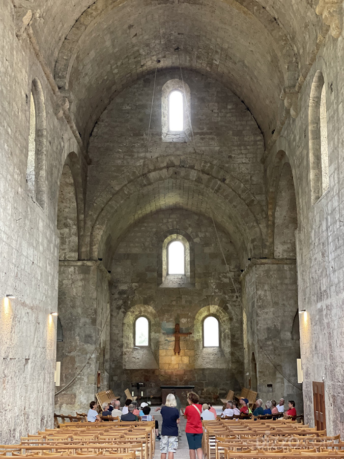 1142년에 세워진 보스코동 수도원은 로마네스크 건축의 걸작으로 평가받는다. 하지만 여느 화려한 성당과는 다르다. 스테인드글라스도, 장식 조각도 없다. 오직 보스코동 인근 채석장에서 캐낸 돌의 자연스러운 질감만이 공간을 채운다. 교회와 수도원 건물 모두가 극도로 단순하고 조화롭게 설계되어, 장식적인 요소가 거의 없고 빛과 석재, 그리고 건물의 비례만으로 공간미를 드러내는데, 그것이 이 수도원의 아름다움이다.