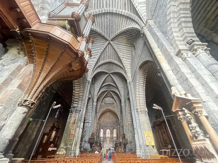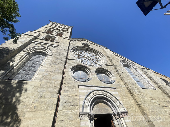 로마네스크와 초기 고딕 양식이 혼합된 이 건물은 회색과 흰색의 돌이 교차하며 만들어낸 패턴이 인상적이다. 입구의 석사자 두 마리가 성당을 지키듯 서 있고, 안으로 들어서면 800여 년의 세월을 견딘 오르간이 눈길을 끈다.
