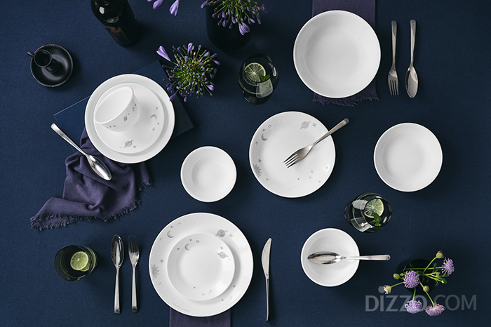 '코렐 셀레스티얼 원더' 컬렉션은 신비롭고 우아한 밤하늘을 코렐만의 감성으로 재해석한 점이 특징이다. 달, 별, 행성 등의 천체 요소들을 핸드드로잉 스타일로 섬세하게 표현해 감각적인 패턴 디자인을 완성했다. 깨끗한 화이트 바탕에 차분한 그레이 톤온톤 패턴이 조화를 이루어 세련되면서도 감성적인 분위기를 자아낸다.