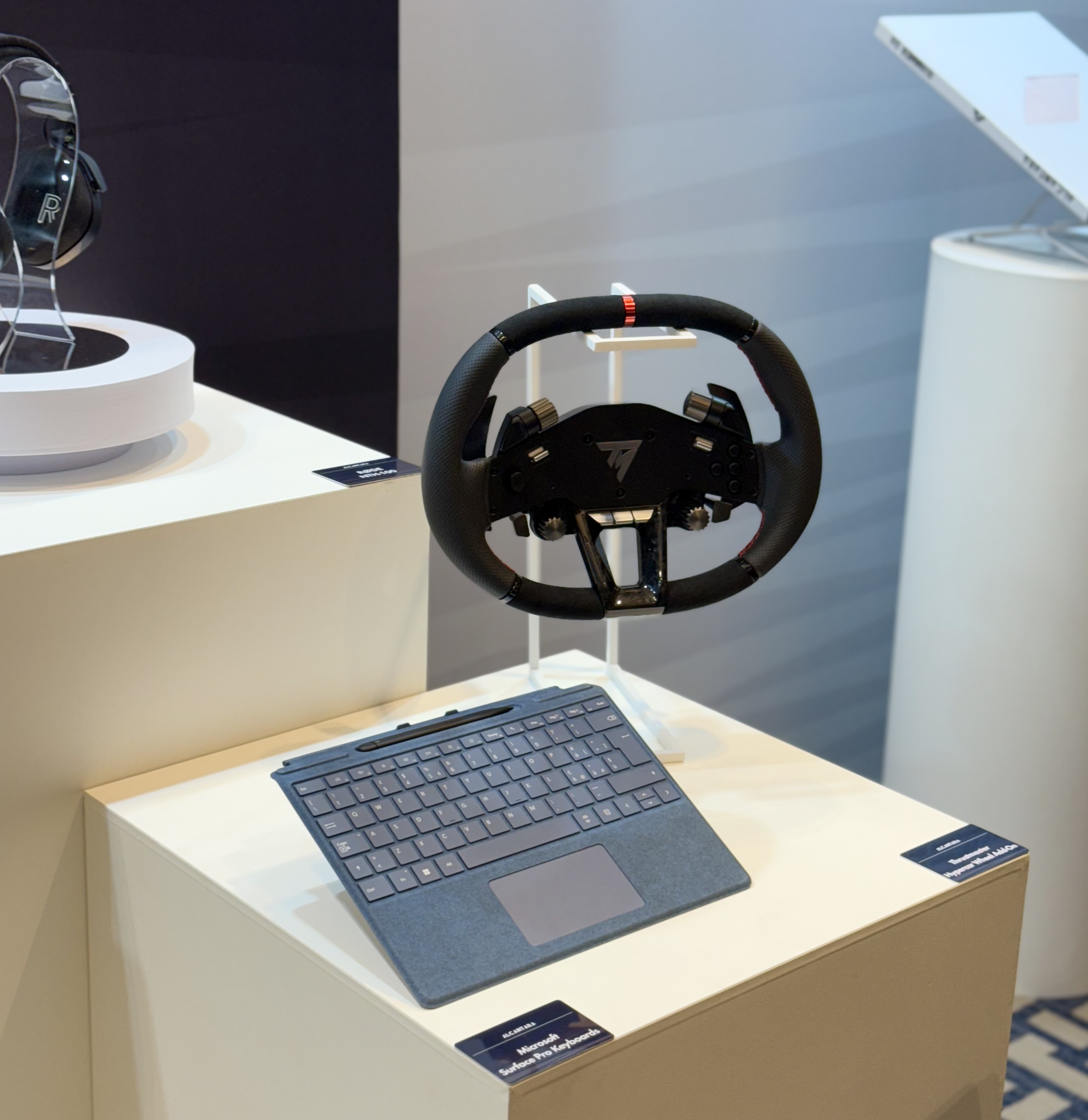 이번 전시에는 알칸타라 소재를 사용하는 한국 가구 브랜드 토레 소파, 알칸타라로 마감된 모토로라 RAZR 60 울트라, 애스페시 2026 S/S 컬렉션, 알칸타라 소재 키보드를 탑재한 마이크로소프트 서피스 프로, 트러스트 마스터 게이밍용 알칸타라 스티어링 휠, 로데(RØDE) NTH-100 헤드폰, 아디다스 가젤 스페셜 에디션 등 다양한 산업군의 협업 제품이 포함됐다.