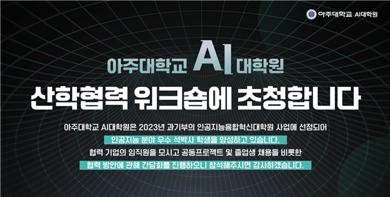 아주대 AI융합혁신대학원이 산업계와의 협력 강화를 위한 워크숍을 개최한다.