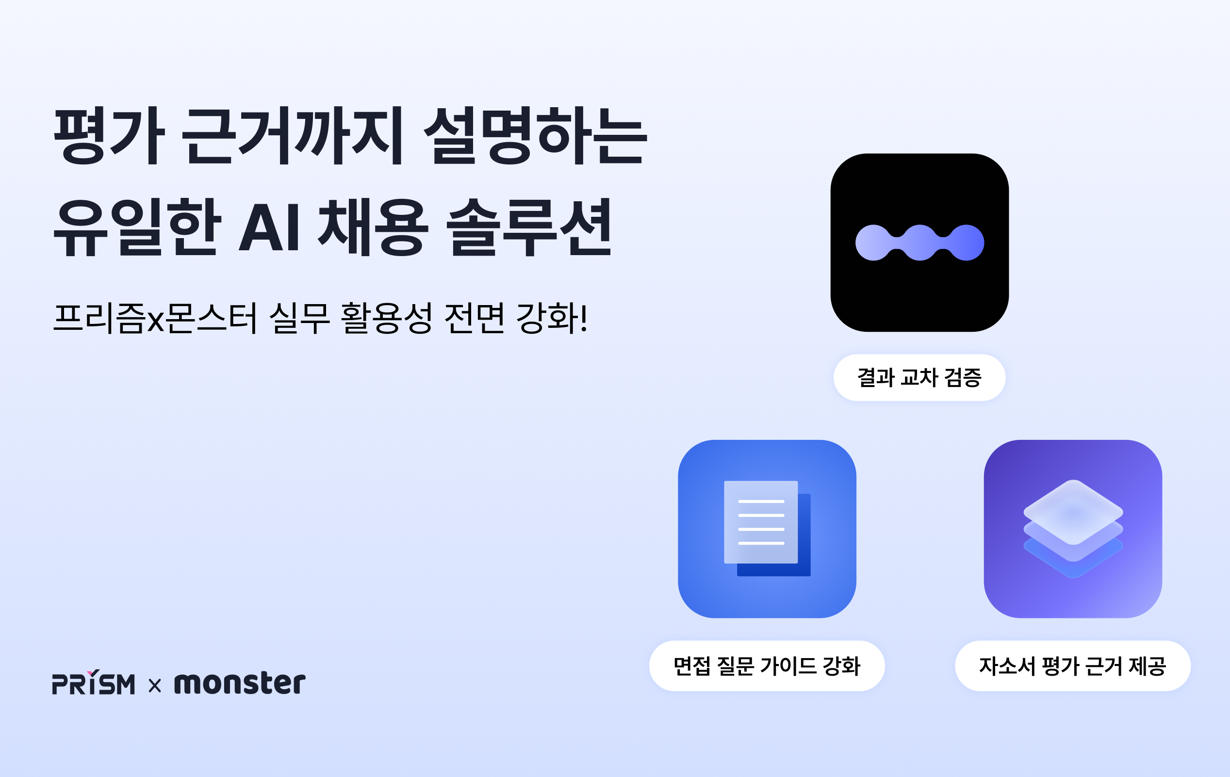 두 솔루션 간 연동성도 강화됐다. 프리즘의 서류 평가와 몬스터의 역량검사, AI 면접 결과를 교차 검증할 수 있어 지원자 역량을 다각도로 검증하고 신뢰성 있는 의사결정이 가능해졌다.