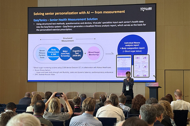 발표자로 나선 김혜빈 비바랩스 최고운영책임자(COO)는 “한국은 세계에서 가장 빠르게 고령화가 진행 중이며, 특히 80세 이상 인구의 상당수가 근감소증으로 인한 낙상 위험을 겪고 있다”며 “고령자의 건강 상태를 세밀히 반영할 수 있는 데이터 기반 운동 관리가 필요하다”고 말했다.