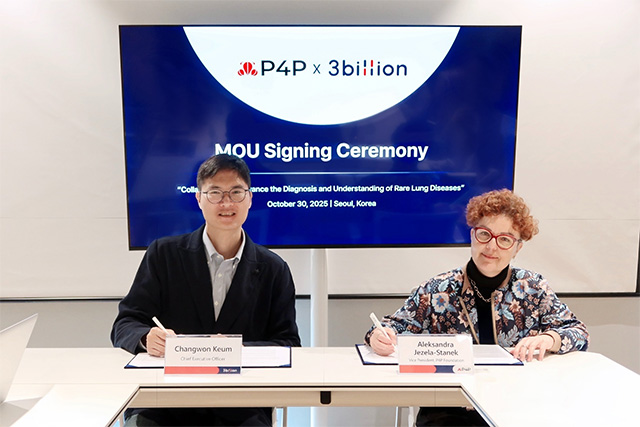 P4P의 Aleksandra Jezela-Stanek 부대표는 “쓰리빌리언은 전 세계 희귀질환 환자에게 혁신적 진단 서비스를 제공하는 신뢰할 수 있는 파트너”라며 “이번 협력을 통해 폴란드 희귀 폐질환 환자들이 더 신속하게 유전적 원인을 규명받고, 적절한 치료로 연결될 수 있기를 기대한다”고 밝혔다.
