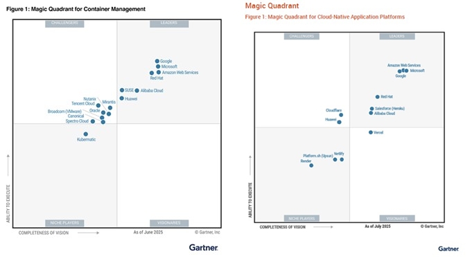 알리바바 그룹의 클라우드 컴퓨팅 부문인 알리바바 클라우드가 글로벌 IT 시장조사기관 가트너의 2025 매직 쿼드런트에서 두 개 부문 리더로 선정됐다. 컨테이너 관리 부문과 클라우드 네이티브 애플리케이션 플랫폼 부문에서 동시에 리더 지위를 획득했다.