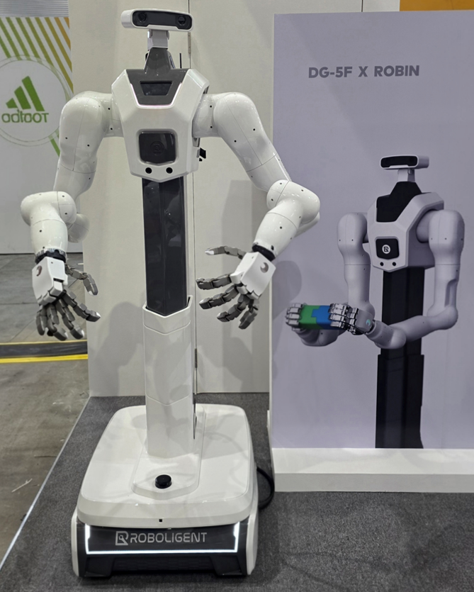 양사는 금일부터 오는 8일까지 일산 킨텍스에서 열리는 '2025 로보월드'에 공동 참가한다. 로볼리전트의 양팔 AI 휴머노이드 로봇 '로빈(ROBIN)'에 테솔로의 그리퍼 'DG-5F'를 적용한 실시간 조작 시연을 진행할 예정이다.