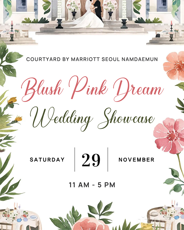 웨딩 쇼케이스 '블러쉬 핑크 드림'은 29일 오전 11시부터 오후 5시까지 코트야드 메리어트 서울 남대문 호텔 3층 한양룸 및 19층 테라스 194에서 진행된다.