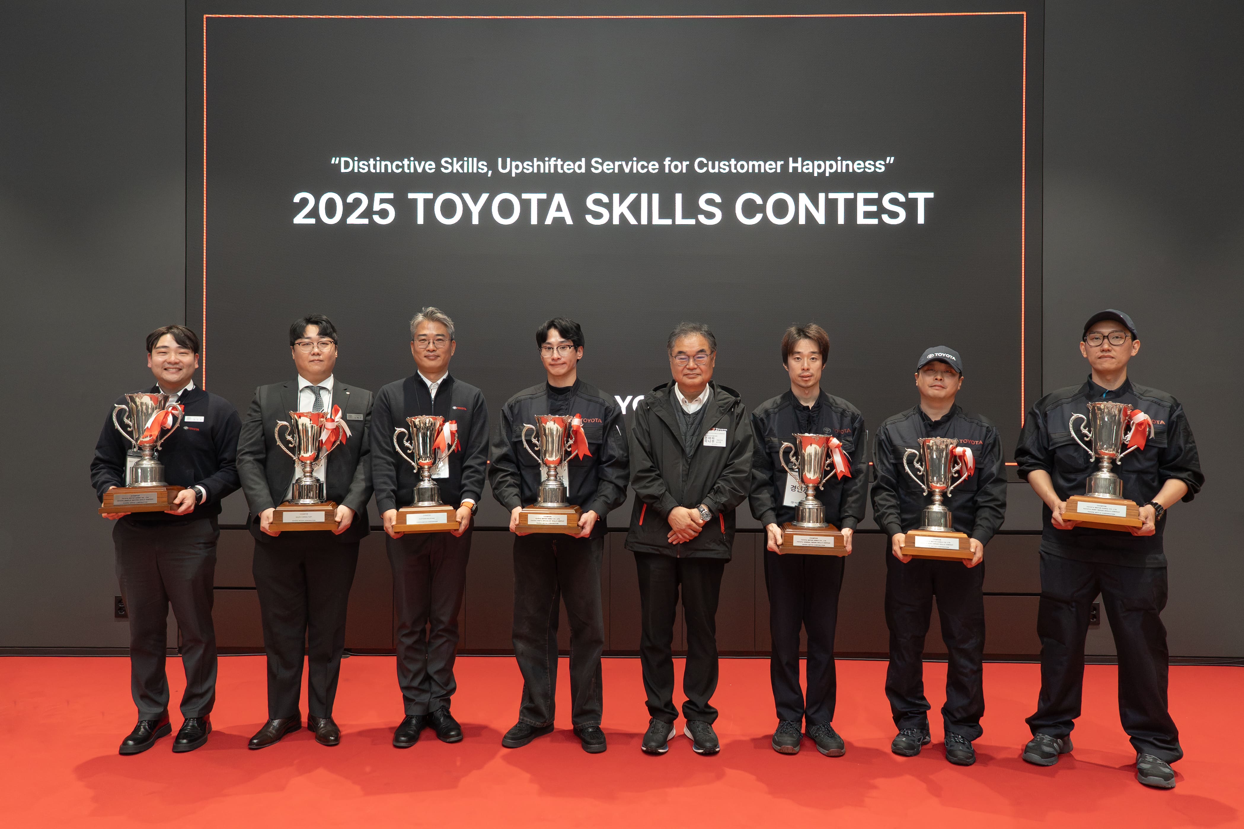 토요타 스킬 콘테스트 부문별 우승자는 서비스 어드바이저(토요타 용산, 한현진), 세일즈 컨설턴트(토요타 용산, 신재훈), 고객 지원(토요타 대전, 권기범), 부품 스페셜리스트(토요타 서초, 조용빈), 일반 정비(토요타 분당, 양형모), 판금(토요타 대전, 김수연), 도장(토요타 서초, 윤용현)이 차지했다.