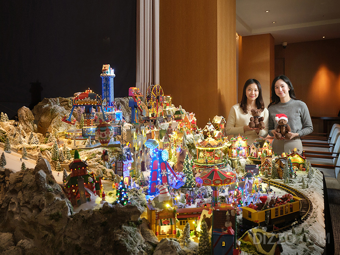 서울신라호텔은 기존의 크리스마스 장식에 더해 올해 처음으로 19층 라운지에 ‘메리 신라 빌리지’를 선보인다. 신라베어가 여행 중 발견한 크리스마스 마켓이라는 콘셉트로 꾸민 이 공간은 오르골과 산타 마을, 스키장 등을 미니어처로 구현해 아이들은 물론 어른들도 시선을 멈추게 한다. -
