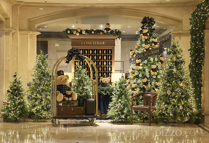켄싱턴호텔 여의도는 도어맨 유니폼을 입은 ‘켄싱턴 베어’를 앞세워 ‘윈터 저니’ 테마 트리를 공개했다. -