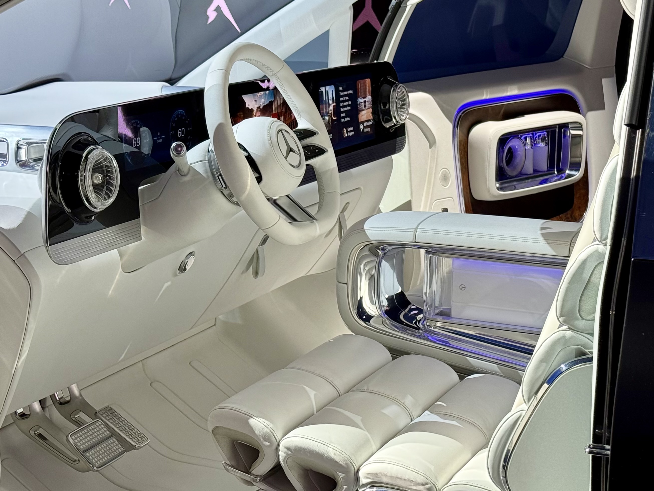 비전 V는 프라이빗 라운지 콘셉트와 극대화된 안락함이 중심이 된 쇼퍼 드리븐 리무진 쇼카로, 넉넉한 공간감과 고유의 품격을 조화시키려는 벤츠의 비전을 담았다. 전례 없는 디지털 경험, 우아한 외관, 완전히 새로운 차원의 편안함을 제공하며, 밴 전기 아키텍처(VAN.EA) 기반의 벤츠 미래 플래그십 리무진, VLS가 제시할 새로운 방향을 미리 보여준다.
