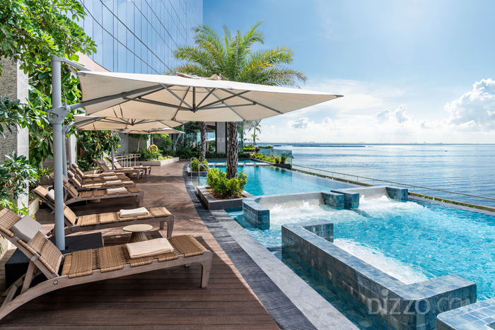 가장 사랑받는 공간 중 하나는 야외 인피니티 풀이다. 바다와 도시, 그리고 CCLEX 대교가 한 화면에 겹치는 풍경은 세부에서만 만날 수 있는 특별한 장면이다.