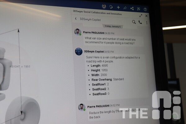 버추얼 트윈 환경에서 AI 활용도 많아지고 있다. 김현진 센터장은 서울 삼성동 아셈타워 사옥에 위치한 다쏘시스템코리아 3D익스피리언스센터에서 AI 에이전트와 대화하며 차량을 설계하는 과정을 시연했다. “4인승으로 EU에 납품할 거 만들려고 하는데, 디멘션 어떻게 가야 될까”라는 질문에 AI는 차량의 최대 높이 등 규격을 추천했다. “5% 줄여줘”라고 요청하자 이 역시 즉시 조정됐다. 마치 챗GPT와 대화하듯 자동차를 설계하는 모습이었다. 설계자가 국가별 안전 규제를 일일이 찾아볼 필요 없이, AI가 유럽·미국·중국 등 각국의 복잡한 규제를 자동으로 반영해 줬다.