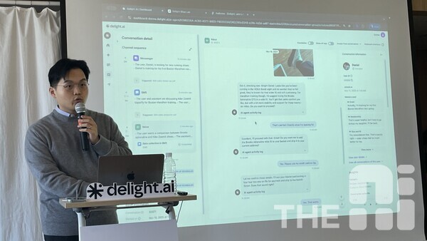 이날 진행된 delight.ai 시연에서 AI는 마치 오랜 단골 고객을 맞이하는 매장 직원처럼 자연스럽게 대화를 시작했다. “보스턴 마라톤을 준비하고 있어요”라고 ‘delight.ai’에 보내자 인공지능(AI)은 쿠셔닝이 좋은 마라톤화를 추천했다. 고객이 대화 도중 자리를 떠나자 문자로 대화를 이어 보냈고, 고객 요청에 따라 AI 보이스 전화로 대화를 이어갔다. 아울러 전화 통화 중 고객이 신은 신발 사진을 분석해 “OOO를 신고 계시네요. 발볼이 넓으시군요”라며 맞춤형 제안을 이어갔다. 웹 채팅에서 시작된 대화가 문자와 전화를 넘나들며 자연스럽게 구매로 이어졌다.