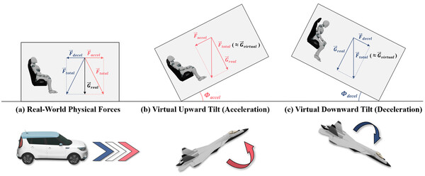 예를 들어 차량이 급가속하면 위로 떠오르는 것 같은 감각이, 급감속하면 아래로 떨어지는 감각이 자연스럽게 유도된다. 이는 인간이 중력과 가속을 명확히 구분하지 못하는 인지심리학적 특성, 즉 조종사나 운전사가 경험하는 ‘중력 착각’ 원리를 응용한 것이다. 중력 착각은 사람이 중력과 가속을 명확히 구분하지 못해 발생하는 감각 착각을 말한다.